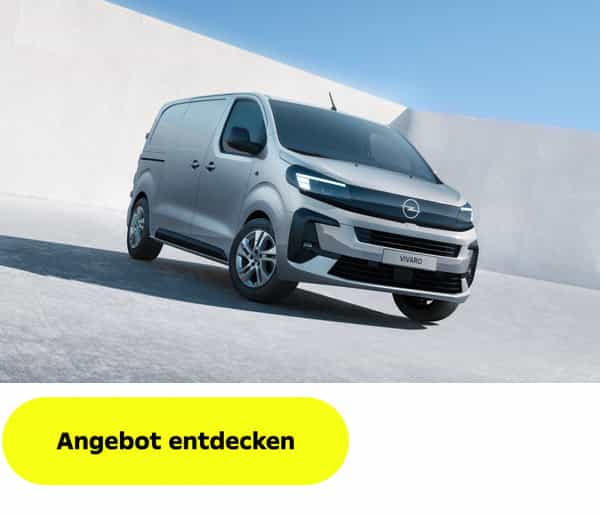 Der Möglichmacher. Ob als effizienter Diesel oder vollelektrisch als Vivaro Electric – der Opel Vivaro überzeugt mit hoher Nutzlast, flexiblen Laderaumlösungen und modernem Komfort. Ein echtes Multitalent für Handwerk, Gewerbe und Transport – zuverlässig, wirtschaftlich und bereit für jede Aufgabe. Jetzt ab 295€ monatlich1 entdecken oder ab 314,95€ monatlich1 inklusive Opel WartungPro. |