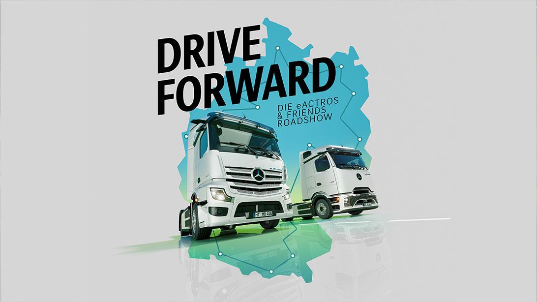 Die eActros & Friends ROADSHOW rückt näher! Unter dem Motto „DRIVE FORWARD“ macht die Flotte Halt bei zahlreichen Mercedes-Benz Trucks Händlern in ganz Deutschland – und bringt die innovativsten Fahrzeuge von Mercedes-Benz Trucks direkt zu Ihnen.